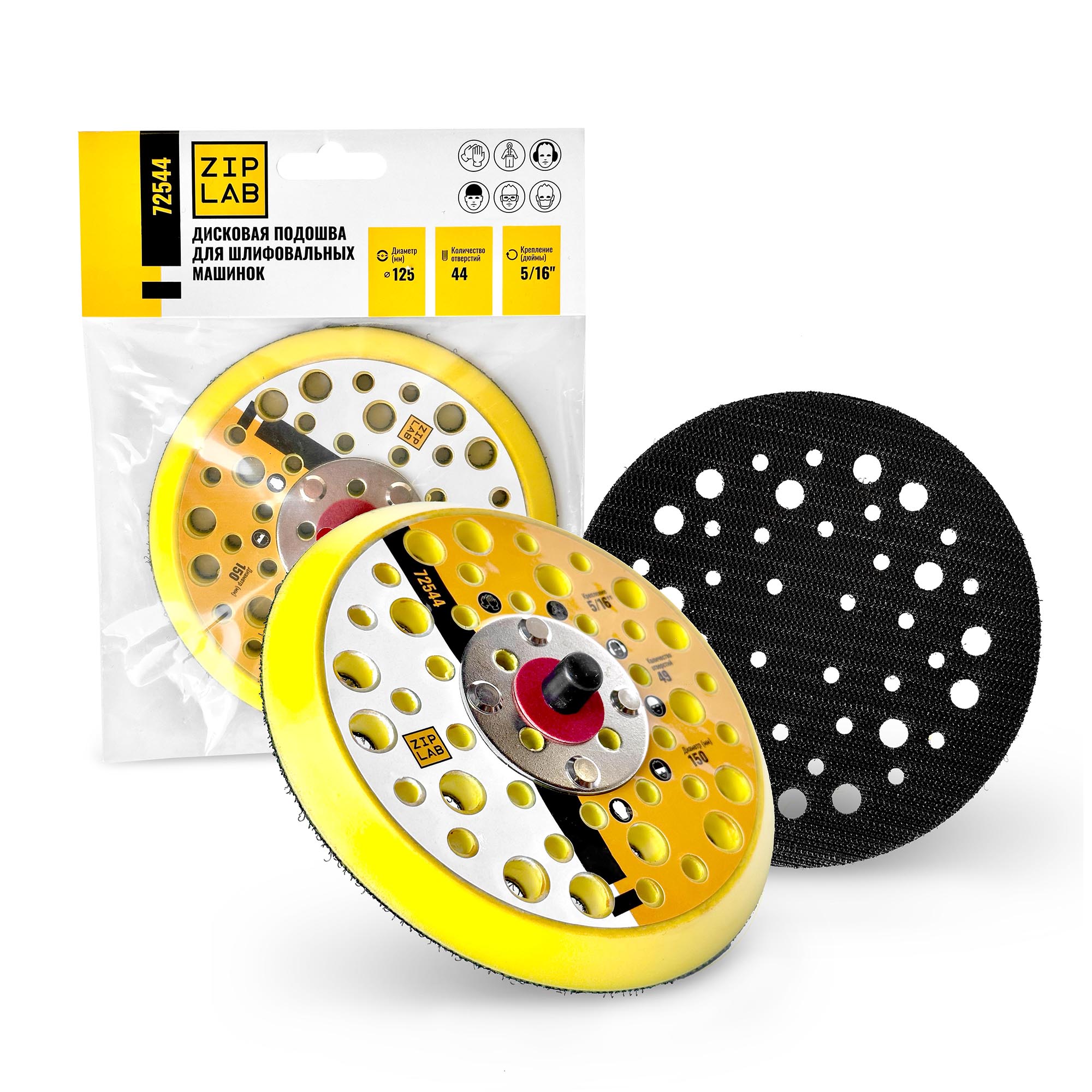 72544 ZIP LAB Дисковая подошва для шлифовальных машинок, стандарт 125мм 44 отв. 5/16'' Цена по запросу 125мм
