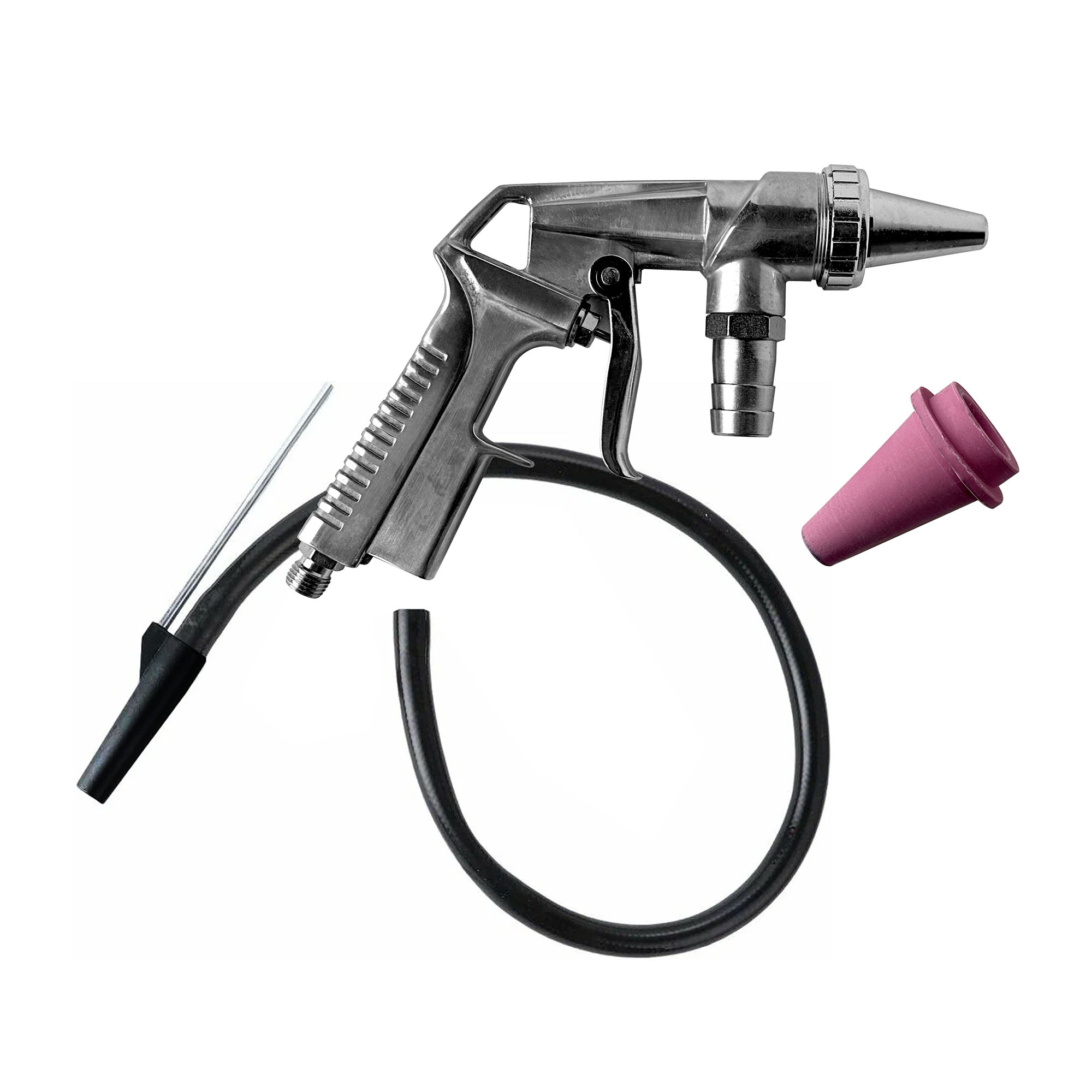 Пескоструйный пистолет PS-3 Подача абразива: трубка Максимальный расход воздуха, в литрах в минуту: 200 Тип соединения с компрессором: байонет Диаметр воздушного штуцера, в дюймах: 1/4F Максимальное давление, в атмосферах: 4.8