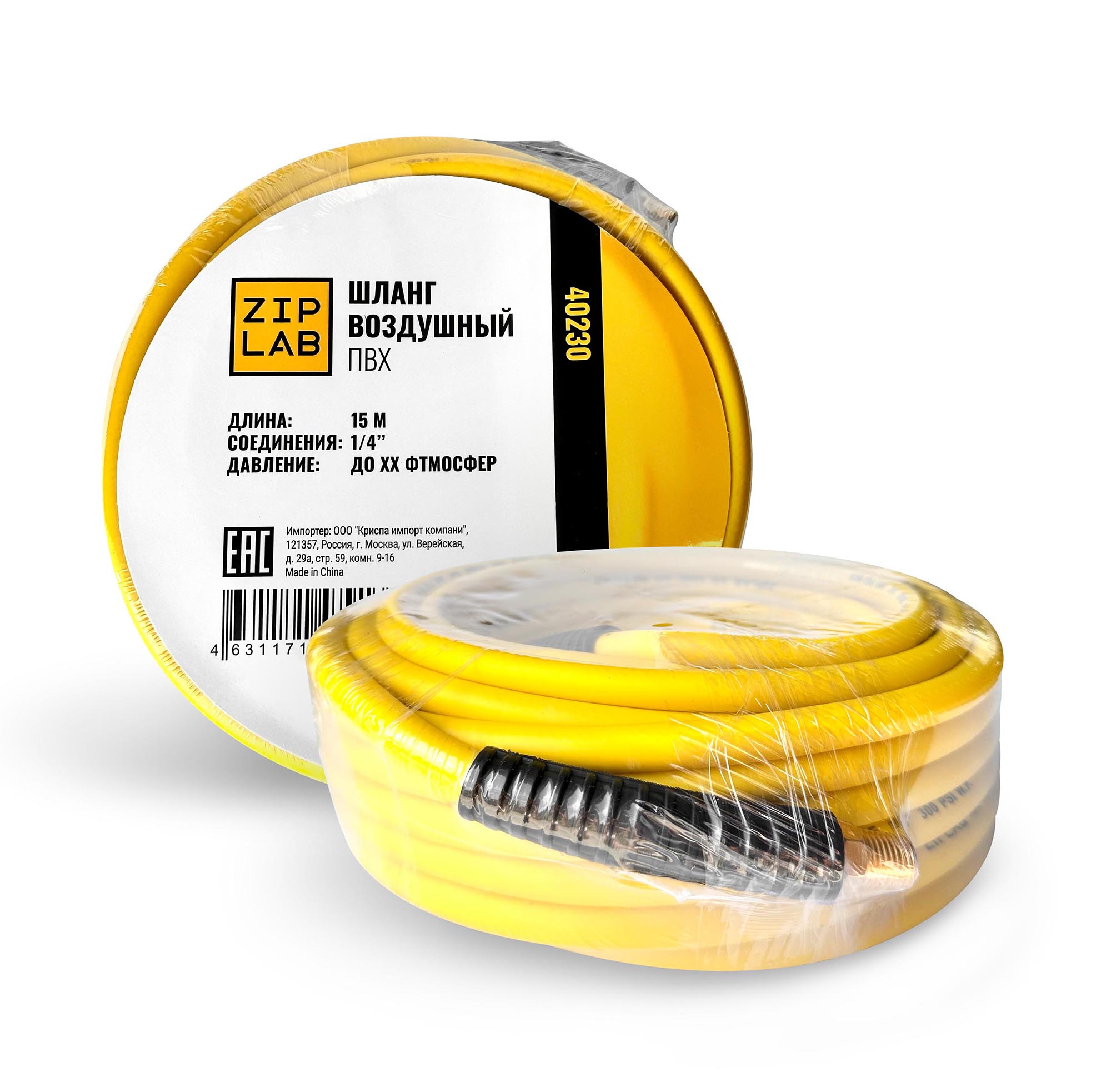 40230 ZIP LAB Шланг воздушный, из ПВХ, длина 15м, на концах резьбовые соединения 1/4″