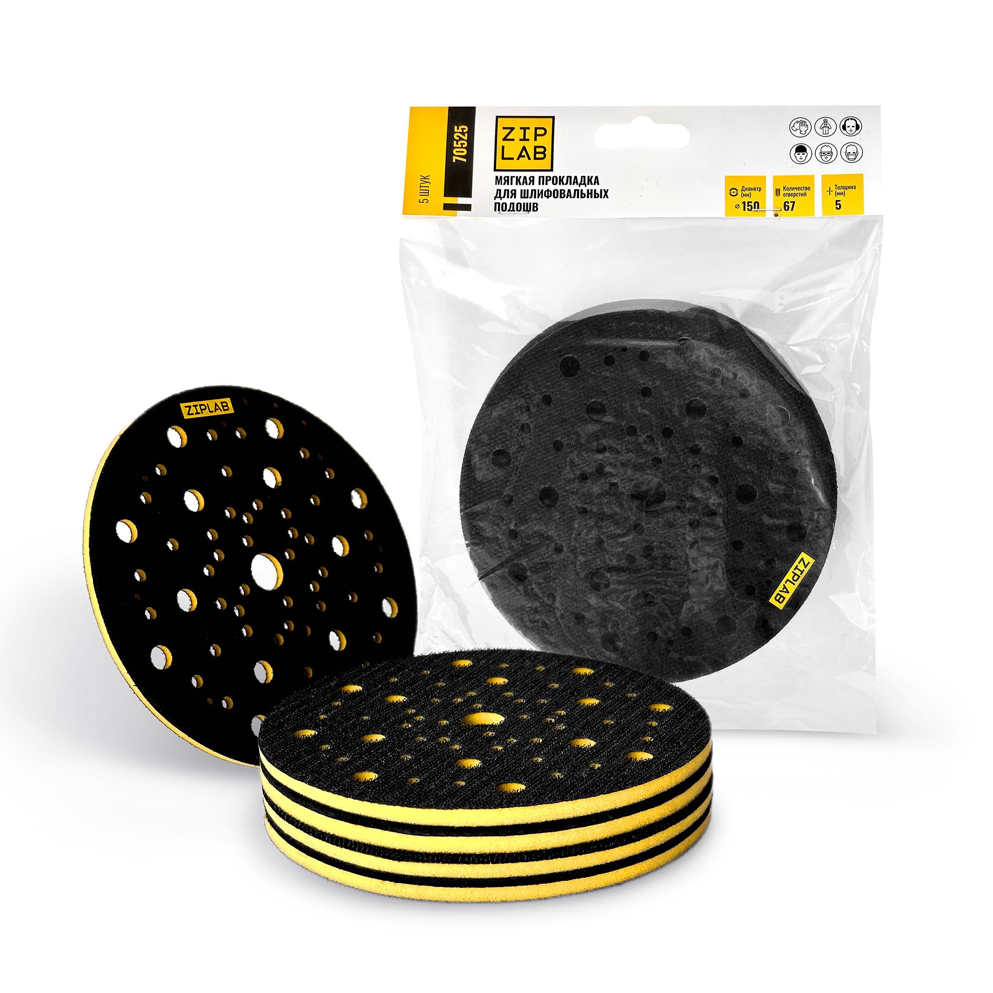 70525 ZIP LAB Мягкая прокладка для шлифовальных подошв 150мм 67отв, 5мм