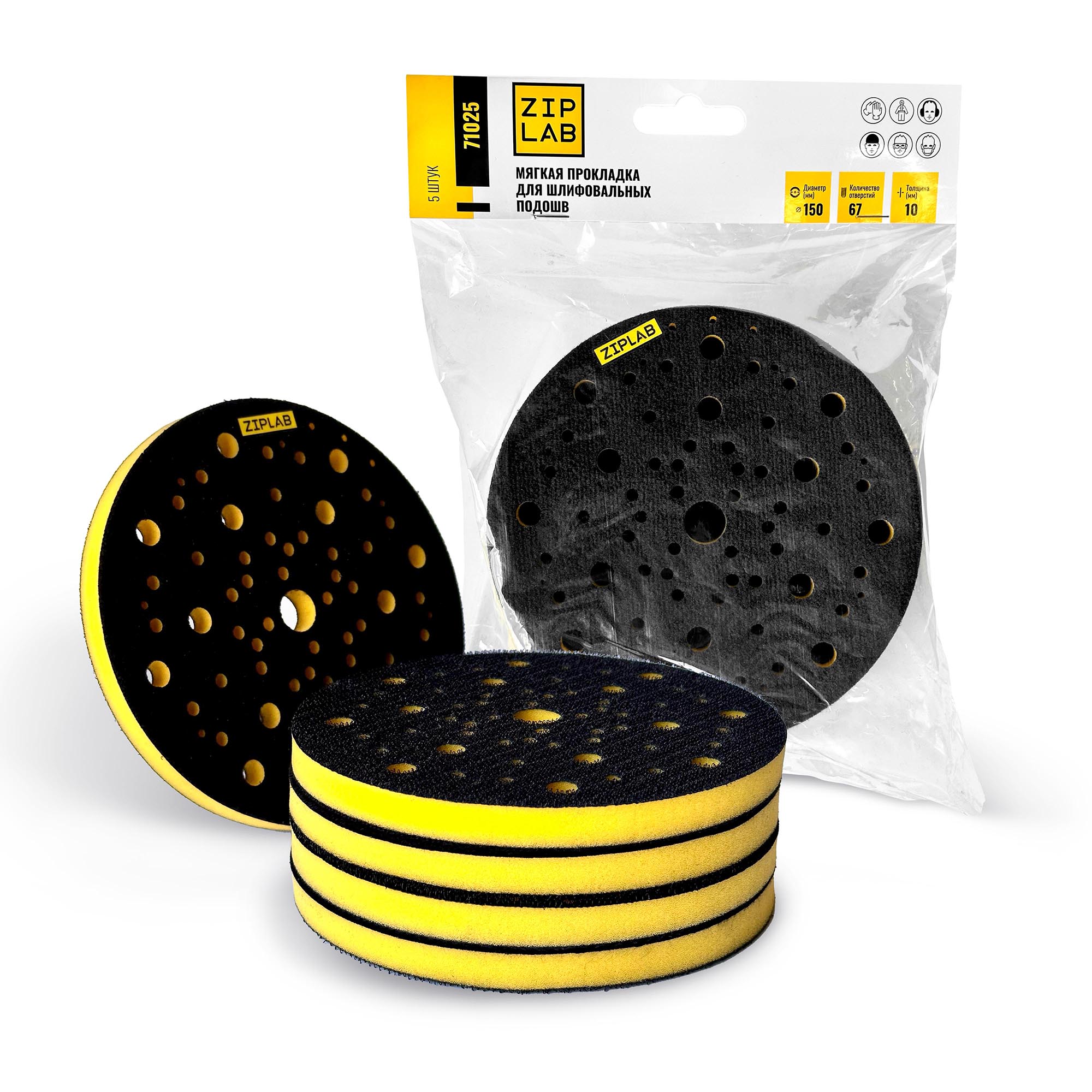 71025 ZIP LAB Мягкая прокладка для шлифовальных подошв 150мм 67отв, 10мм