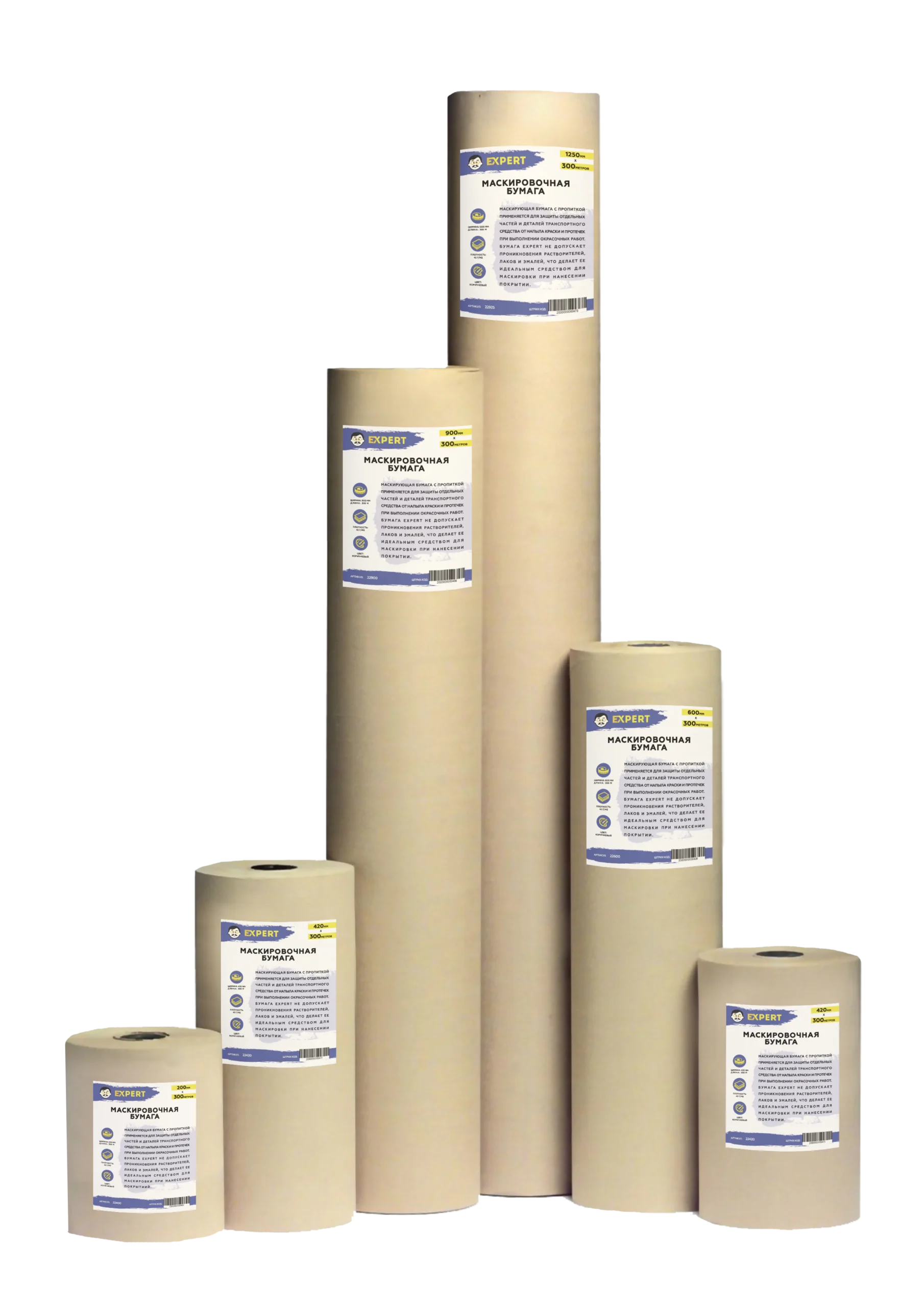 Маскирующая бумага с пропиткой применяется для защиты отдельных частей и деталей транспортного средства от напыла краски и протечек при выполнении окрасочных работ. Бумага Expert не допускает проникновения растворителей, лаков и эмалей, что делает ее идеальным средством для маскировки при нанесении покрытии.