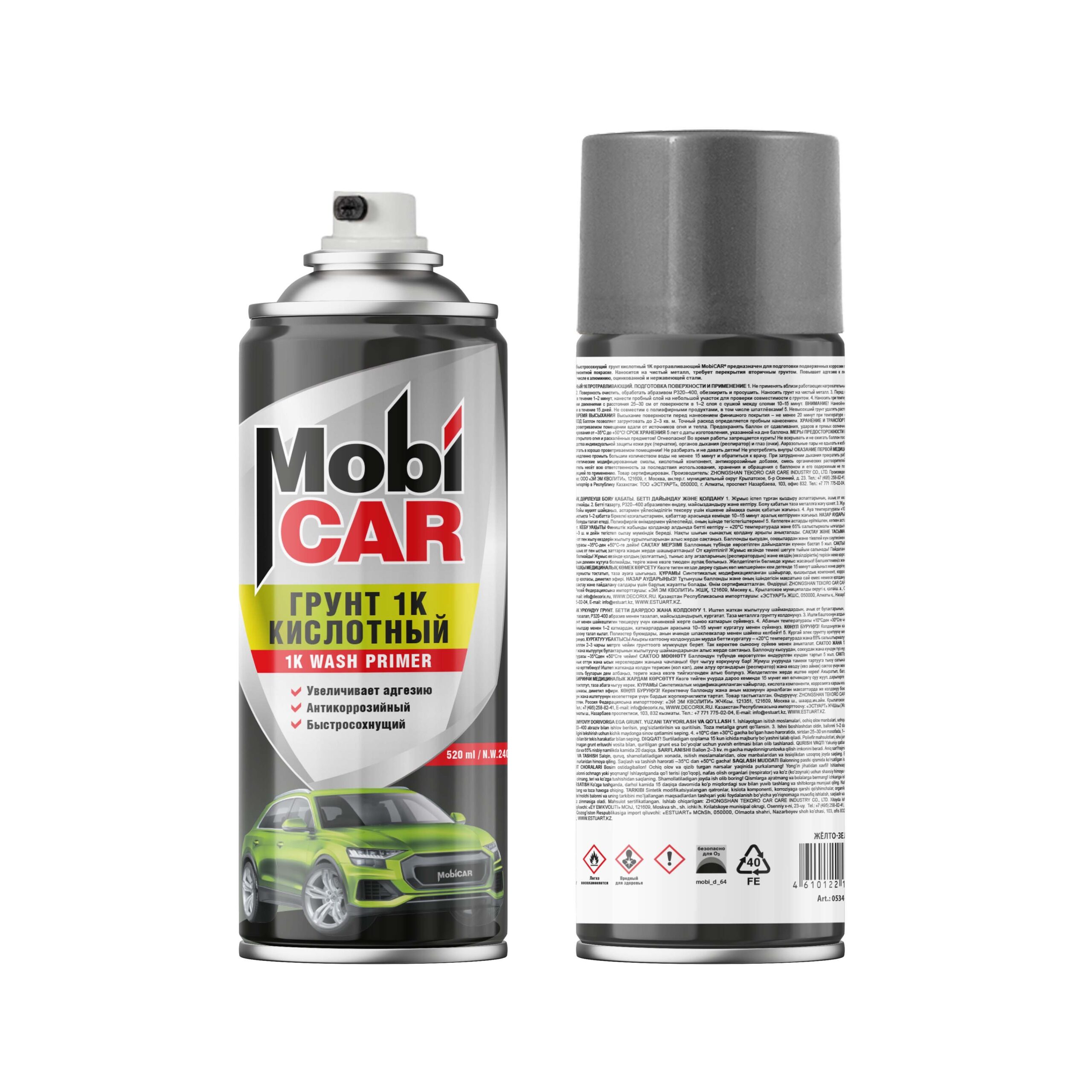 Профессиональный быстросохнущий грунт кислотный 1K протравливающий MobiCAR®